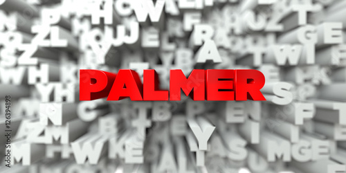 PALMER - Red text on typography background - 3D rendered royalty free stock image. This image can be used for an online website banner ad or a print postcard.