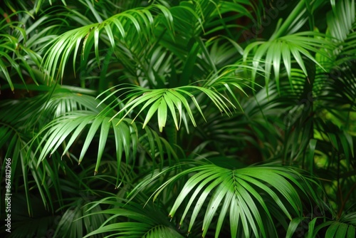 Palms in Tropical Forest. Green Palms in Lush Exotic Garden