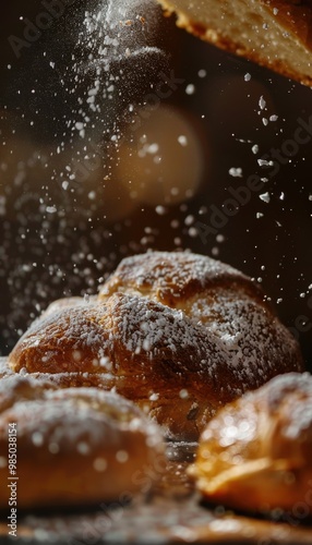 Pan de Muerto Dusting with Powdered Sugar - Traditional Mexican Bread for Día de los Muertos Celebrations