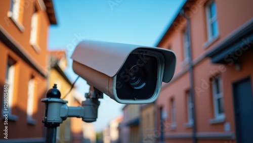 Pan Tilt Security Camera. Outdoor white security camera, surveillance
