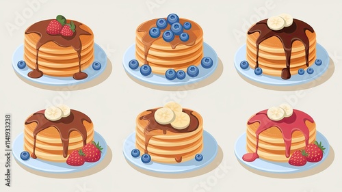 Pancake Stack Collection: Classic Pancakes, Blueberry Pancakes, Chocolate Chip Pancakes, Banana Pancakes, and Strawberry Pancakes