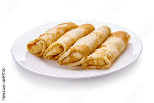 pancakes with cheese are isolated on a white background