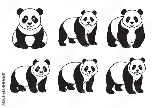 Panda silhouette vector Set
