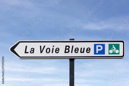 Panneau directionnel la voie bleue Moselle-Saône en France