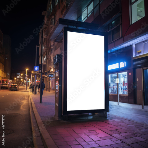 panneau publicitaire personnalisable pour maquette de présentation de publicité dans un environnement urbain, vue nocturne