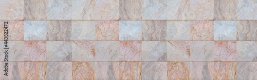 Panorama of Brown granite tiled wall with vintage pattern texture and background seamless