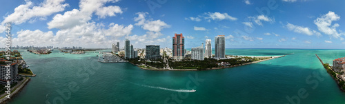 Panorama of Miami Beach skyline. Miami Beach cityscape. Miami Beach skyline with skyscrapers and coastline from above.