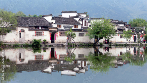 Panorama of Moon Lake in Hongcun Village, Anhui province of China