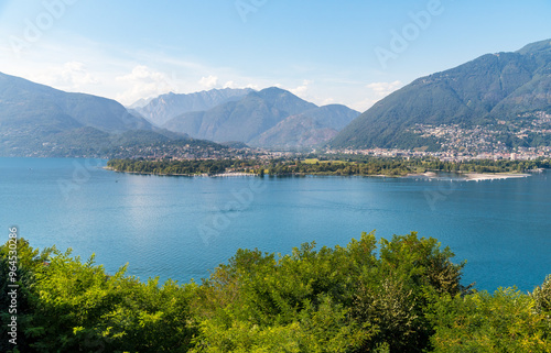 Panorama of the lake Maggiore from village Vairano (Gambarogno), Ticino, Switzerland