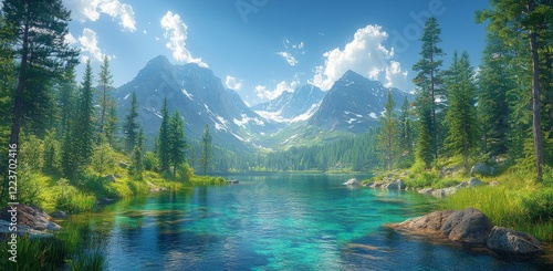 Panorama view of Beautiful Spirit Island in Maligne Lake, Jasper National Park, Alberta, Canada