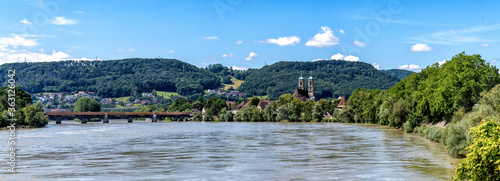 panorama view of picturesque Bad Saeckingen in southern Germany with the historic covered bridge