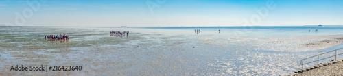 Panoramaaufnahme - Erlebnis Wattwanderung im Wattenmeer der Nordsee, bei Dagebüll