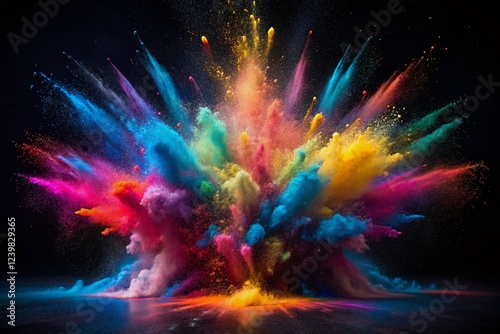 Panoramic Abstract Powder Cloud Explosion in Dark Space
