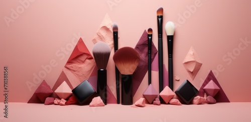 Panoramic banner with make-up and cosmetic products. Beauty products, make up brushes and accessories.