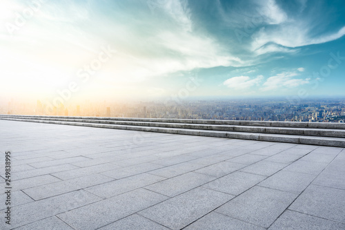 Panoramic city skyline and buildings with empty square floor in Shanghai,high angle view