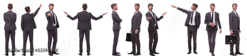 panoramic collage of various photos of a young businessman