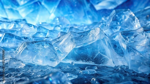 Panoramic ice texture with blue light
