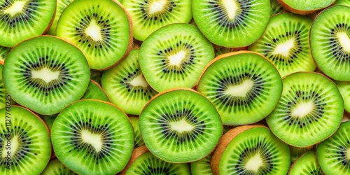 Panoramic Kiwi Fruit Slices Background: Vibrant Green Texture, Juicy Wallpaper, Fresh Food Photography