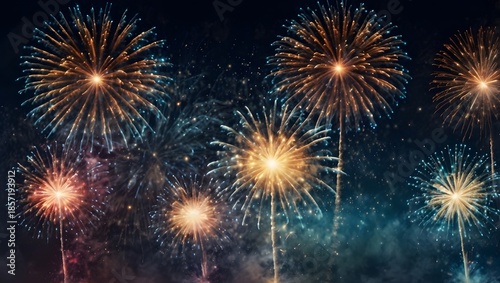 Panoramic New Year’s Eve Fireworks Banner Background