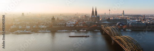 Panoramic of river Rhine at sunset, Cologne, Germany