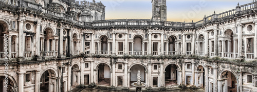 Panoramic Of Two Story Cloisters, Wrapping Around a Courtyard. Templar Castle/Convent Of Christ, Tomar, Portugal.