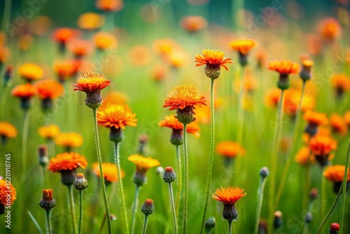 Panoramic Orange Hawkweed Wildflower Meadow, Minimalist Nature Photography