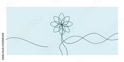 Panoramic Single-Line Flower Art: Abstract Floral Design, Light Blue Frame, Minimalist Botanical Illustration