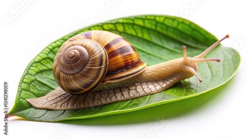 Panoramic Snail Leaf Photography: Macro Shot of Snail on Green Leaf