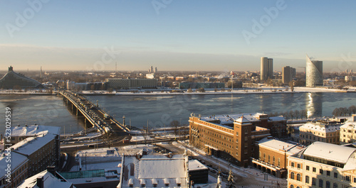Panoramic view from above to Riga on a winter day. Latvia. The Baltic States.