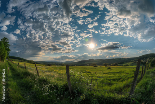 Panoramic view of a stunning mountain landscape with dramatic sky and clouds.