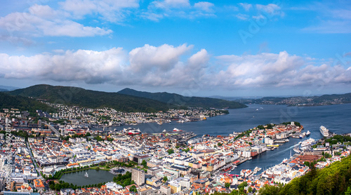 Panoramic view of Bergen from Mount Floyen. Bergen is the city and municipality in Hordaland on the west coast of Norway