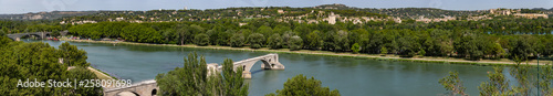Panoramic view of Fort Saint-Andre in Avignon, France, withthe famous Avignon bridge in the foreground