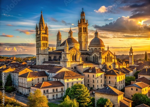 Panoramic View of Kathedrale Saint Front in Perigueux, Perigord - Stunning Architectural Marvel Surrounded by Scenic Landscape and Historic Charm