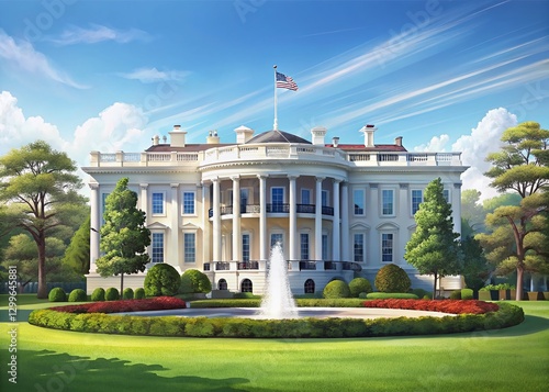 Panoramic View of Presidential Mansion, Washington DC Landmark, Historical Building, USA Capital