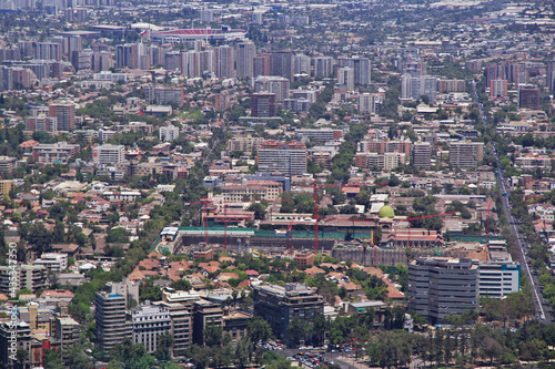 Panoramic view of Santiago from San Cristobal Hill, Chile