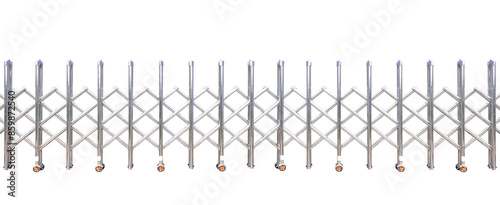 Panoramic view of stainless steel barrier gate or folding fence gate isolated on transparent background, png file