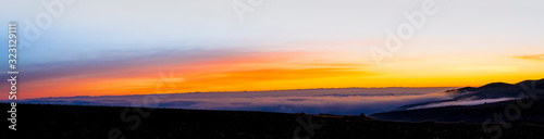 panoramic view of sunrise over the clouds on the mountain.