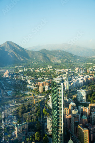 Panoramic view of the capital city Santiago from the tallest building in Latin America Sky Costaneira aerial