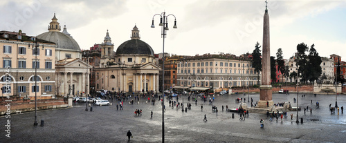 Panoramic view on Piazza del Popolo in Rome, Italy