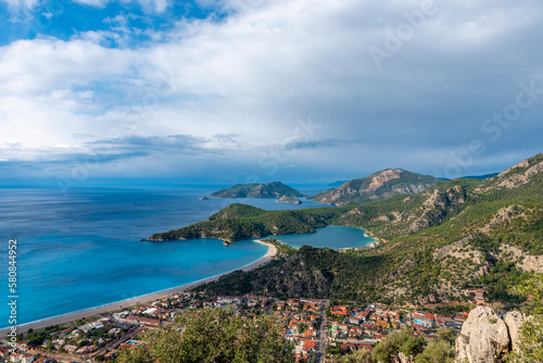 Panoromiv view of Oludeniz of Fethiye Mugla with beautiful sea and sky color