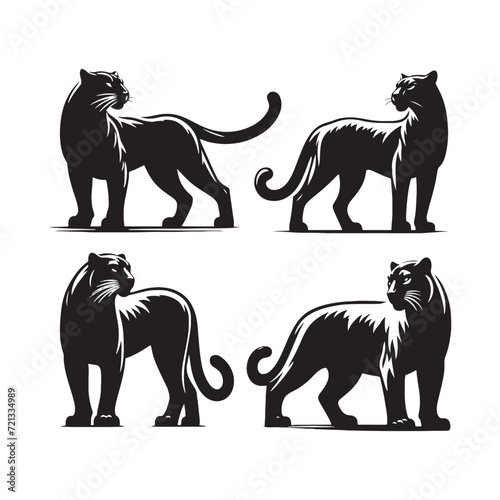 Panther Silhouette Majesty: A Collection of Graceful Panther Silhouettes Exuding Elegance and Power - Panther Illustration - Panther Vector