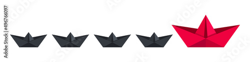 Paper boat. Red paper boat leads black paper ships. Vector illustration