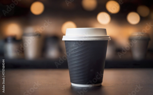paper coffee cup on blurred background