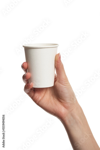 paper cup held in hand on white background