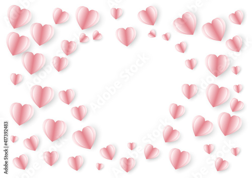 Paper cut design elements in shape of heart flying on white background. Vector symbols of love for Happy Valentine's Day, birthday greeting gift card design.