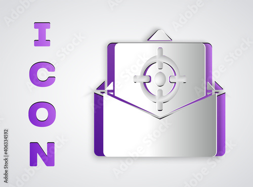 Paper cut Mail and e-mail icon isolated on grey background. Envelope symbol e-mail. Email message sign. Paper art style. Vector.