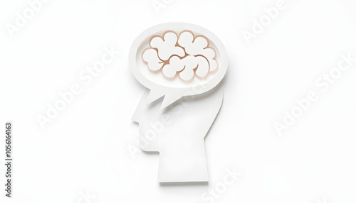 Paper cut man head illustration with chat bubble brain on isolated background. Modern 3D papercut craft communication concept design for social media app, psychology or business brainstorm project i
