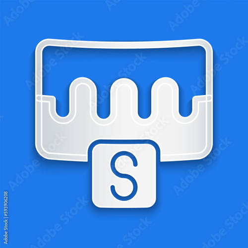 Paper cut Music wave equalizer icon isolated on blue background. Sound wave. Audio digital equalizer technology, console panel, pulse musical. Paper art style. Vector