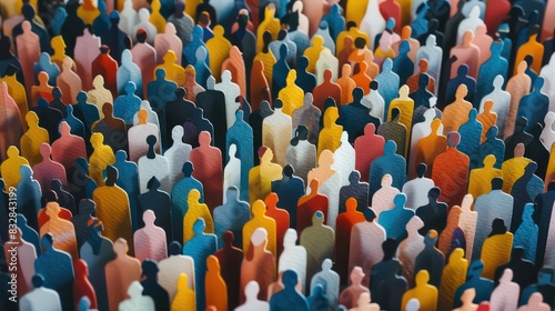 Paper cut out of a large crowd of people standing together. Diverse community and teamwork concept