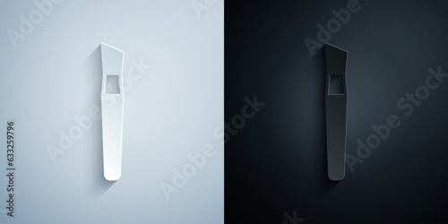 Paper cut Paint brush icon isolated on grey and black background. Paper art style. Vector